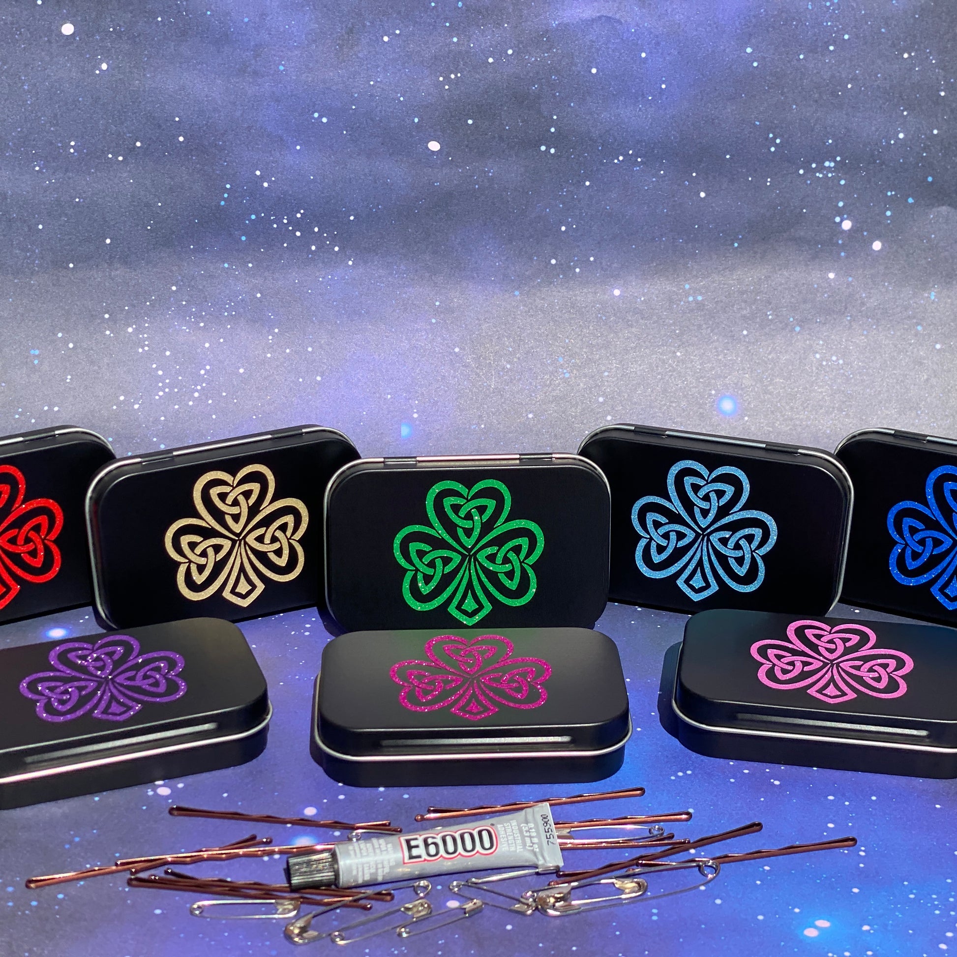 Enhance your storage game with FeisRX add-on. Includes 10 Bobby pins, 10 safety pins of various sizes, and a mini bottle of E6000 glue. Perfect for last-minute fixes at the feis. Pack it all in to your storage tin (not included) for a worry-free day.