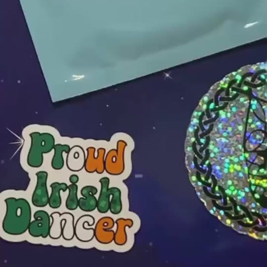 Sprinkle some sparkles into your world with our Dance Shoe Sticker & Magnet Pack! Great for jazzing up water bottles, laptops, notebooks, and more, these 5 stickers and 2 magnets showcase glittery Irish dance shoes that will have you tapping your toes! With glitter and plain versions of soft shoes or hard shoes, plus a transparent “Proud Irish Dancer” sticker and white backed magnet, flaunt your passion for dancing in a stylish way.