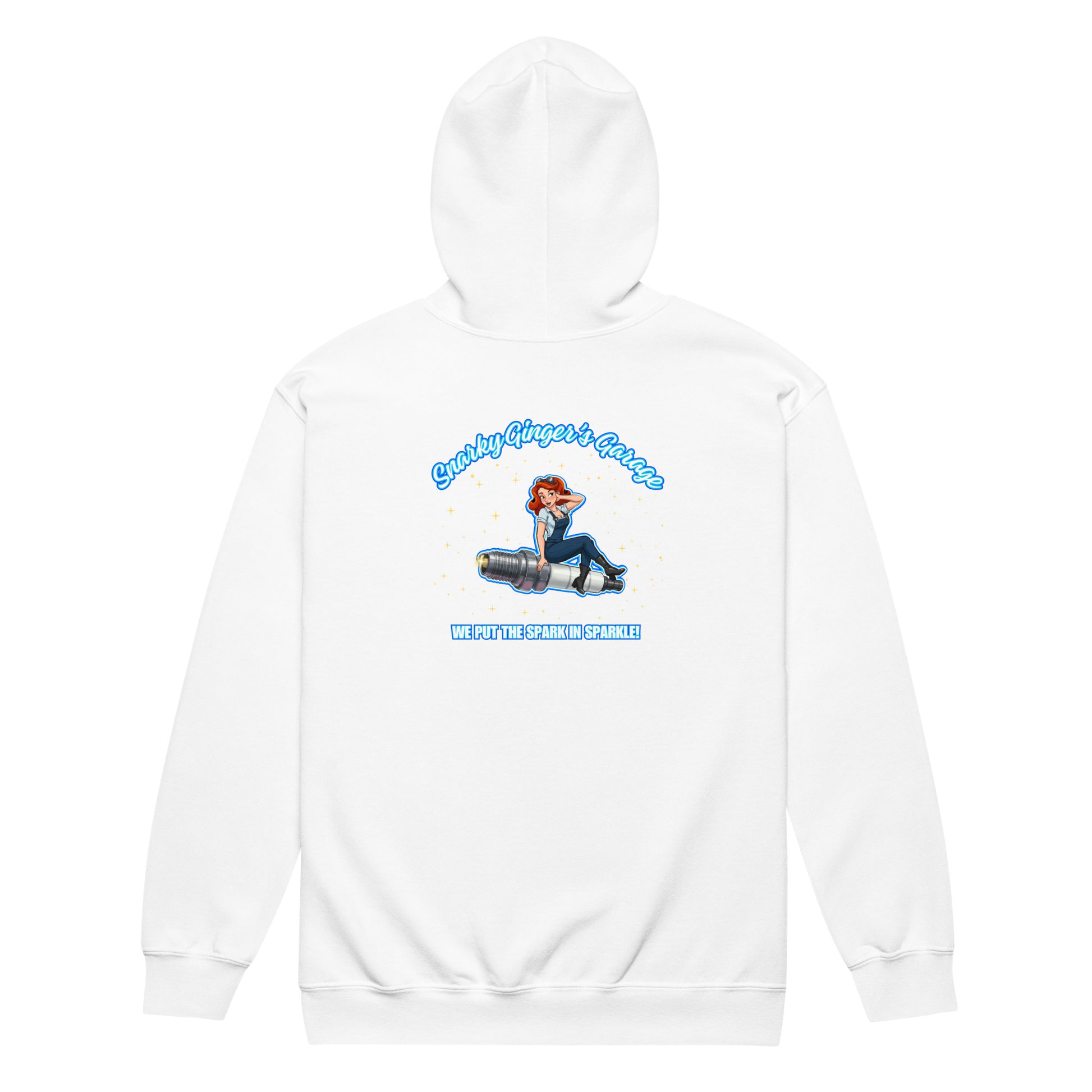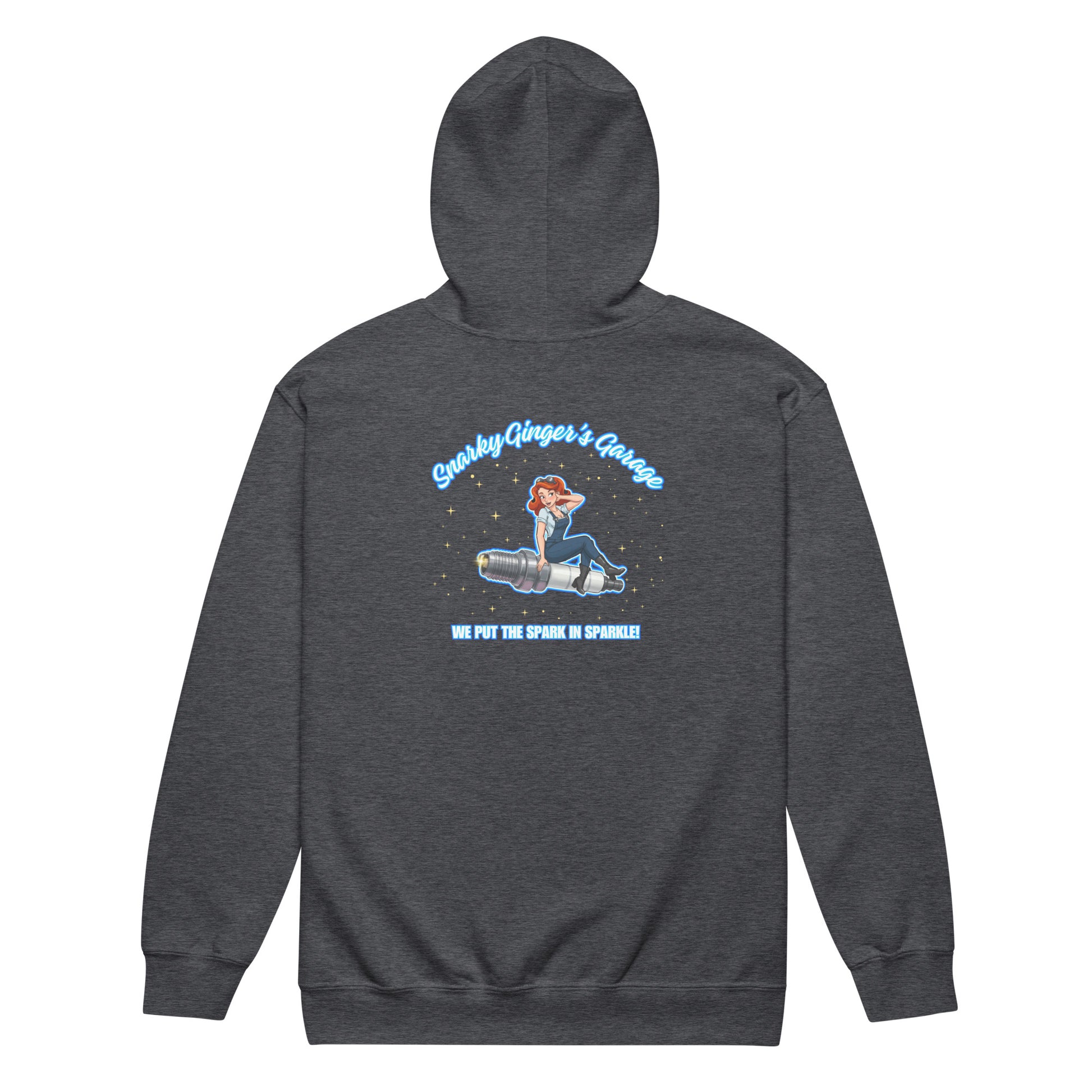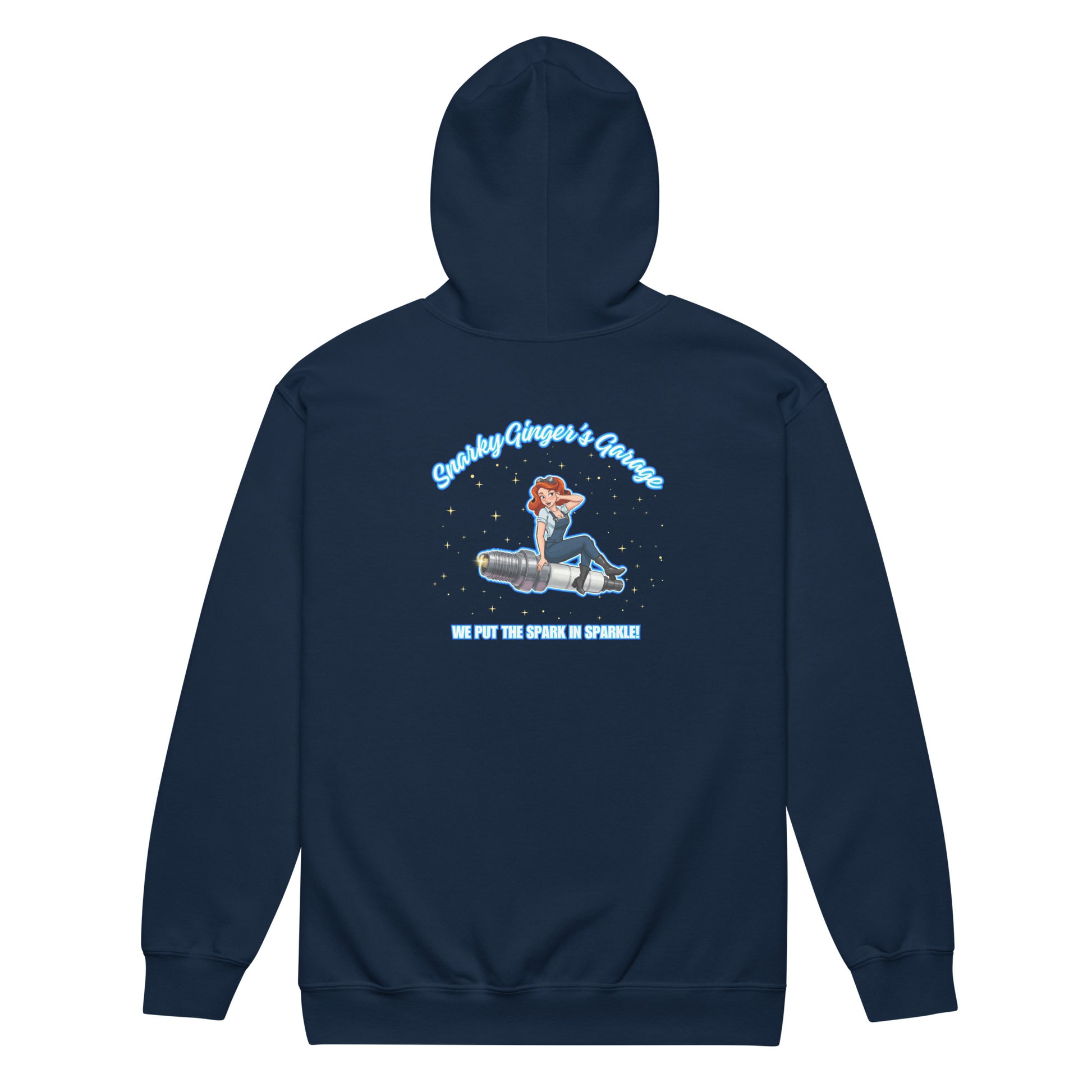 Add some sugar, spice, and everything nice to your wardrobe with Snarky Ginger's unique mechanic pin-up girl artwork. With a playful combination of spark and sparkle, this design celebrates the powerful women in the automotive industry. Perfect for any car enthusiast looking to add some personality to their clothes.
